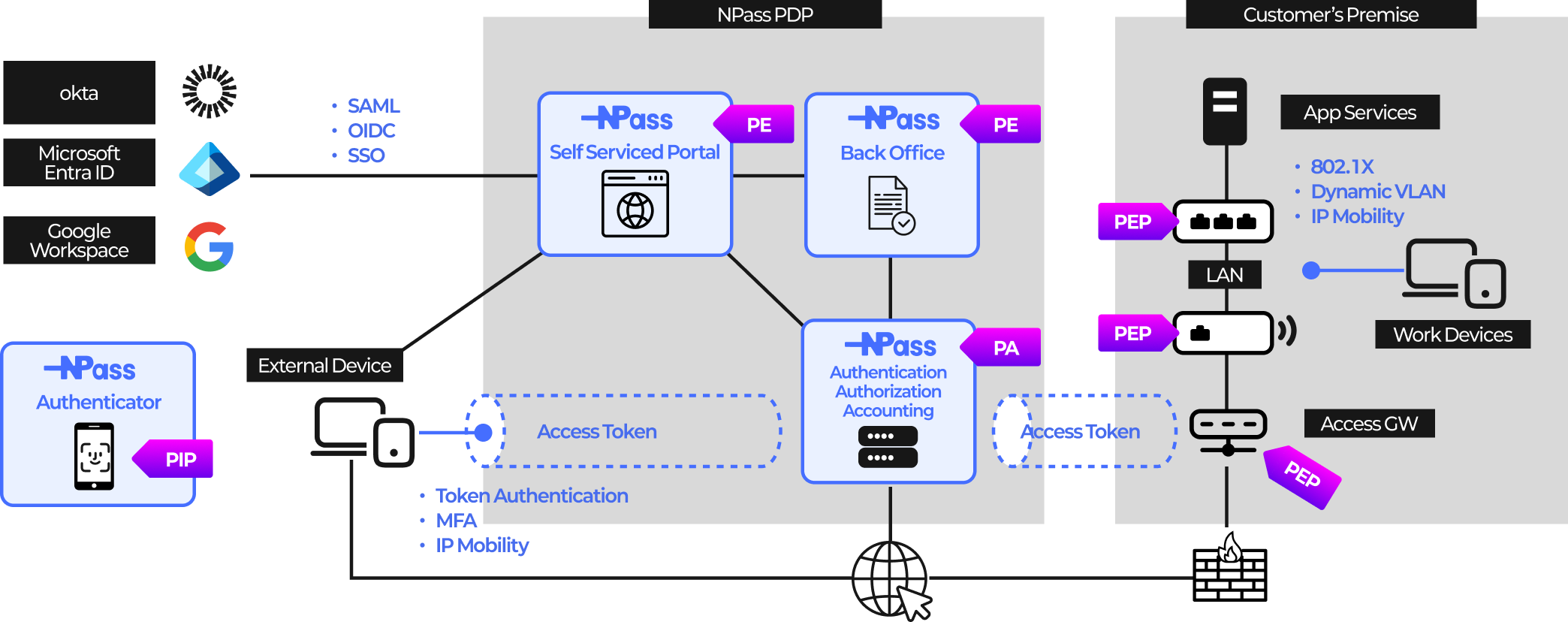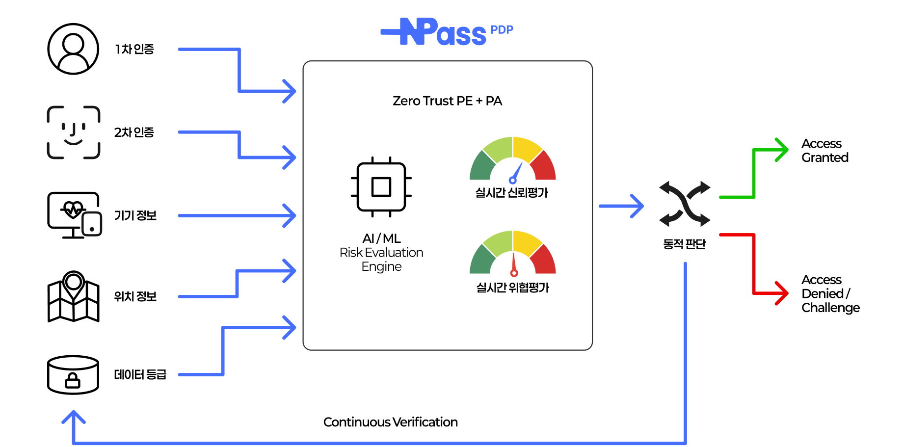 Security is determined not by the gateway, but by the brain (PDP) that decides what to allow. Netcube NPass is a full-featured PDP that fully complies with the Ministry of Science and ICT's Zero Trust Guideline 2.0.