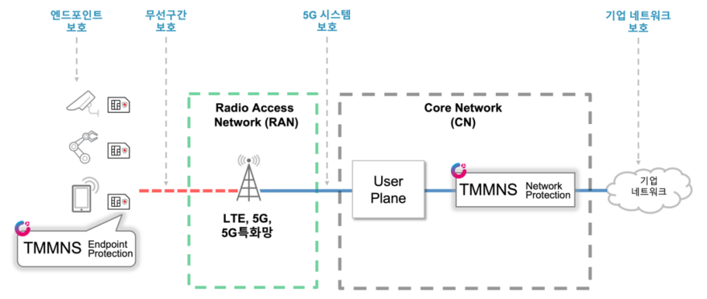 CTOne TMMNS는 이동통신을 통한 기업 네트워크 접속 시 엔드포인트 부터 데이터 네트워크 까지 통합 보안 기술 제공